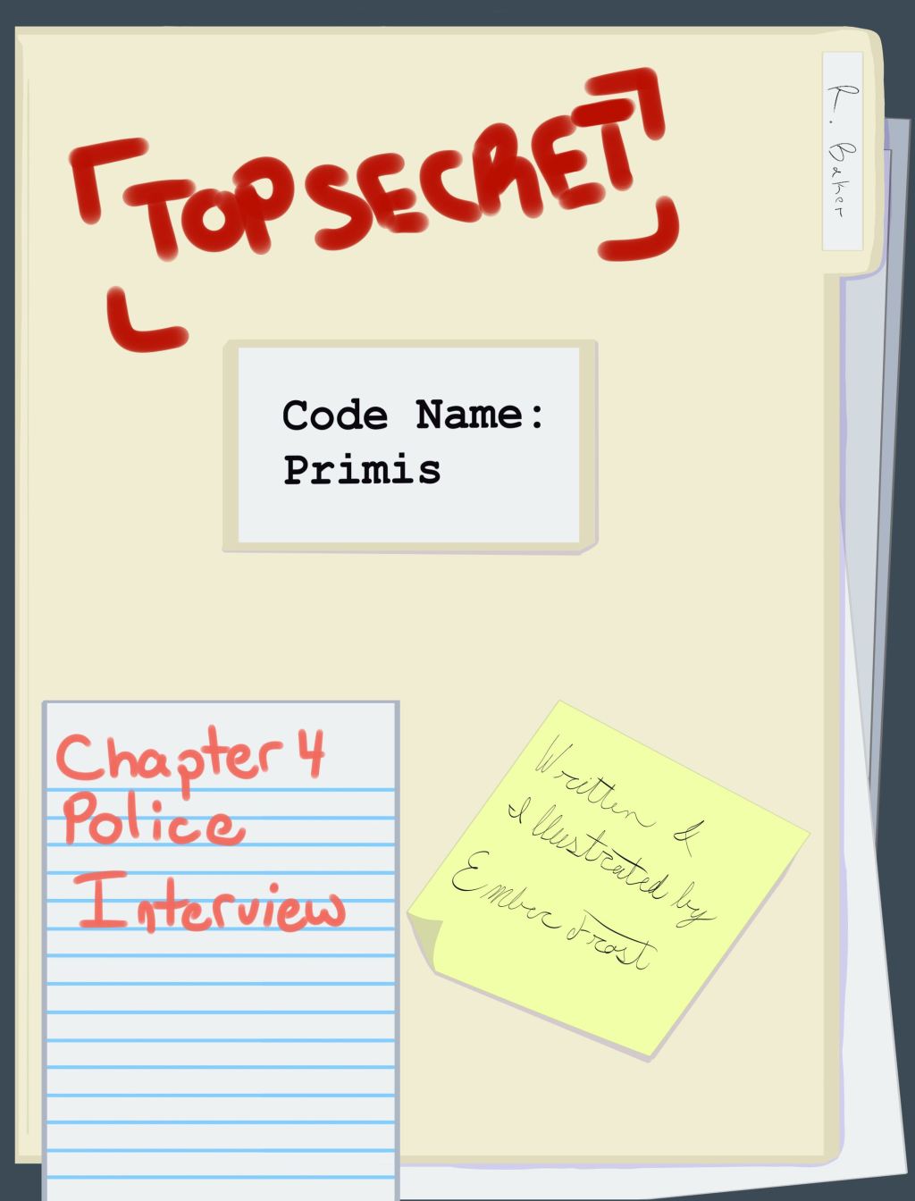 The interview takes place in an interrogation room. Zebedee Berhanu and Jameson “James” Albi sit on one side of the metal table, with Sebastian and Paige on the other side. There is a microphone in the center of the table. A red light is blinking, indicating it is recording audio. Paige looks nervous; Sebastian appears irritated and distrustful.
